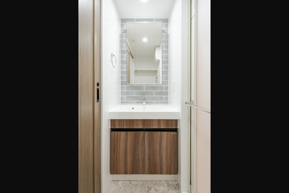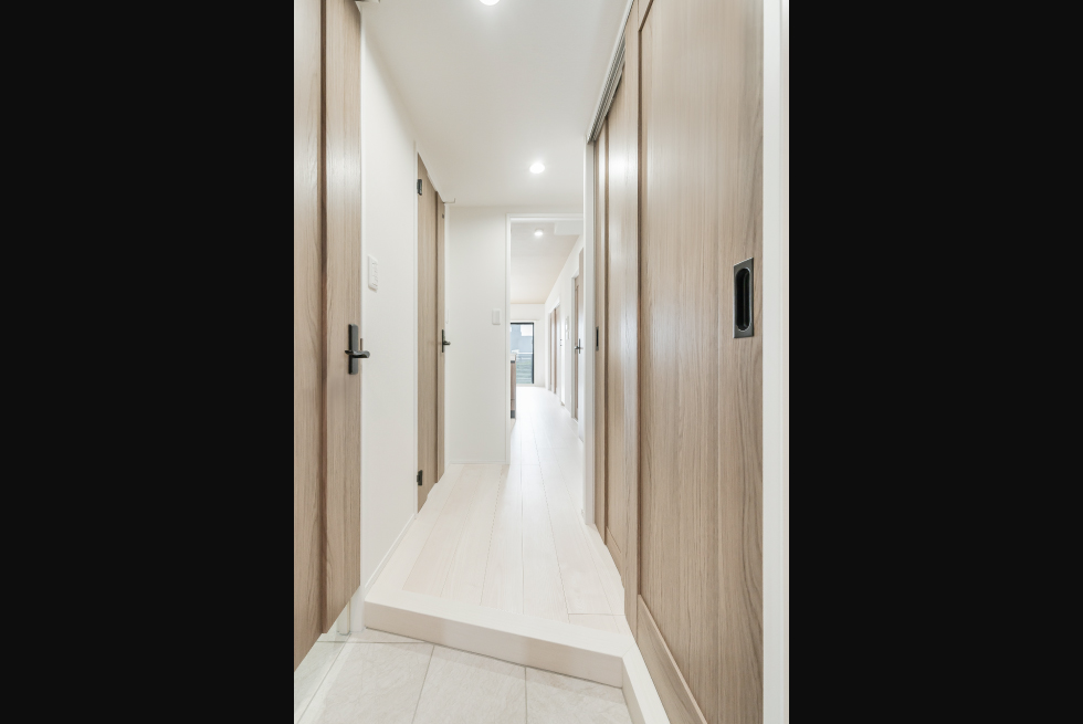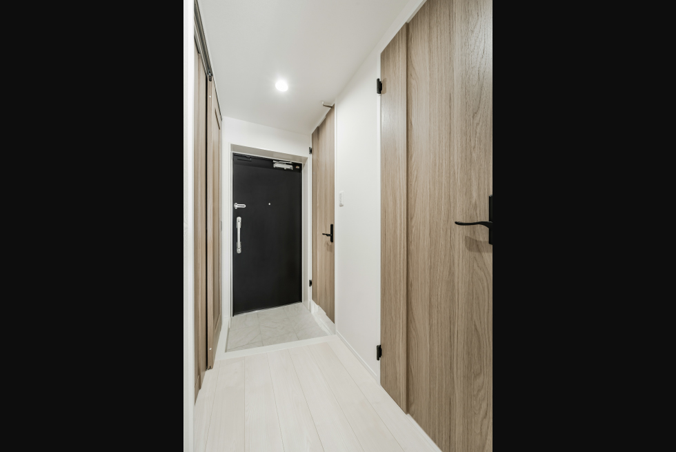 一方エントランスには、ブラックの大判タイルにアッシュ系の木素材を張ることで、ハイセンスなアメリカンテイストを感じさせます。内装は、1部屋ごとに全く異なる表情を見せており、1ランク上のライフスタイルを叶えます。