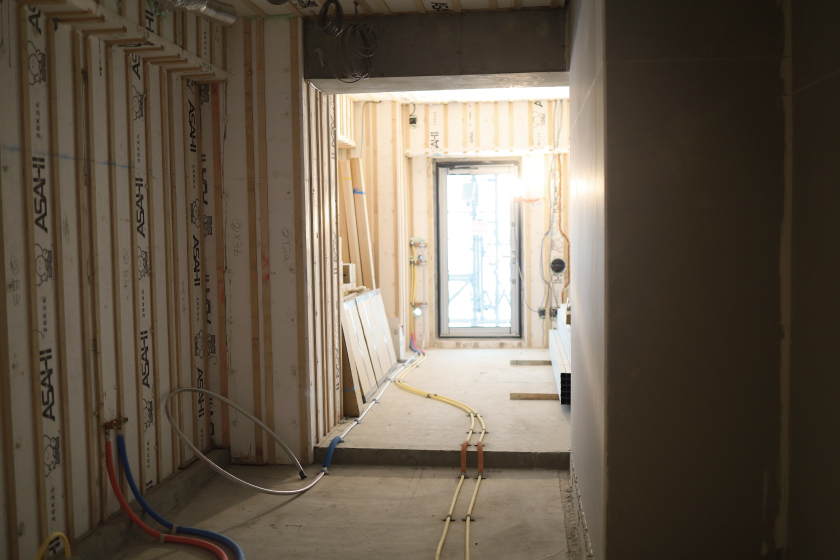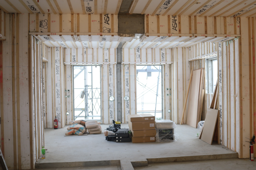 上階に上がると、建築途中の様子を見ることができました!