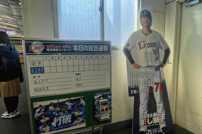 プロ野球選手・菅井信也投手の看板が出迎えてくれました!