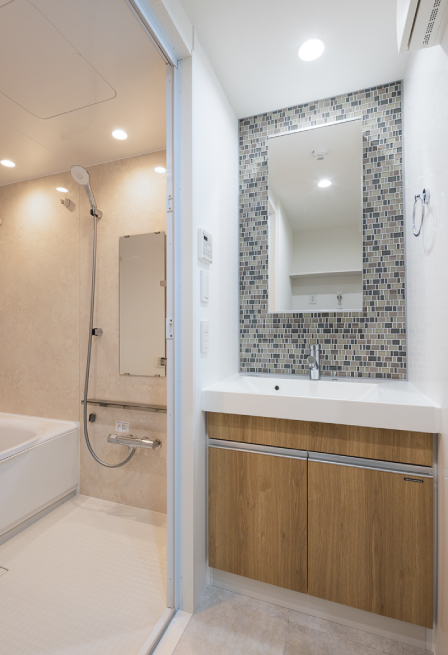 なんとお部屋ごとに異なるアクセントクロスモザイクタイルを採用しています。