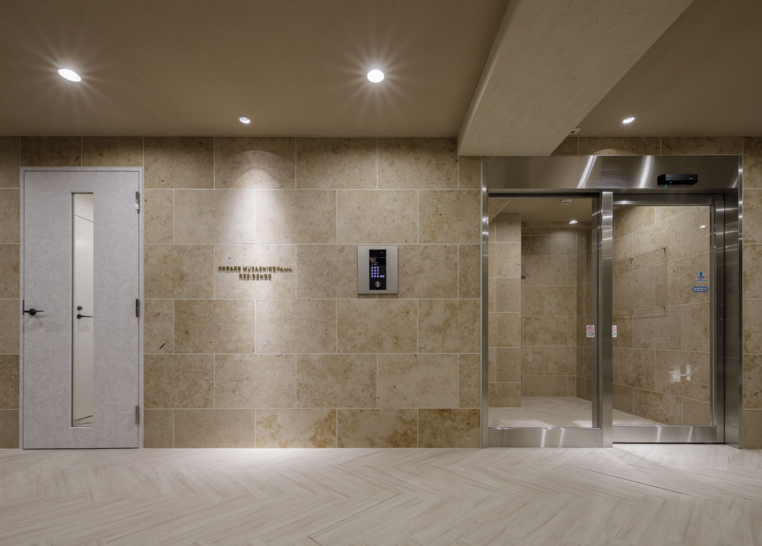 エントランスの内部の壁には「ジュラストーン」と呼ばれるタイルを使用しています。