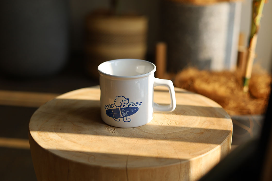 こちらはFROMのオリジナルキャラクターを描いたマグカップ。
