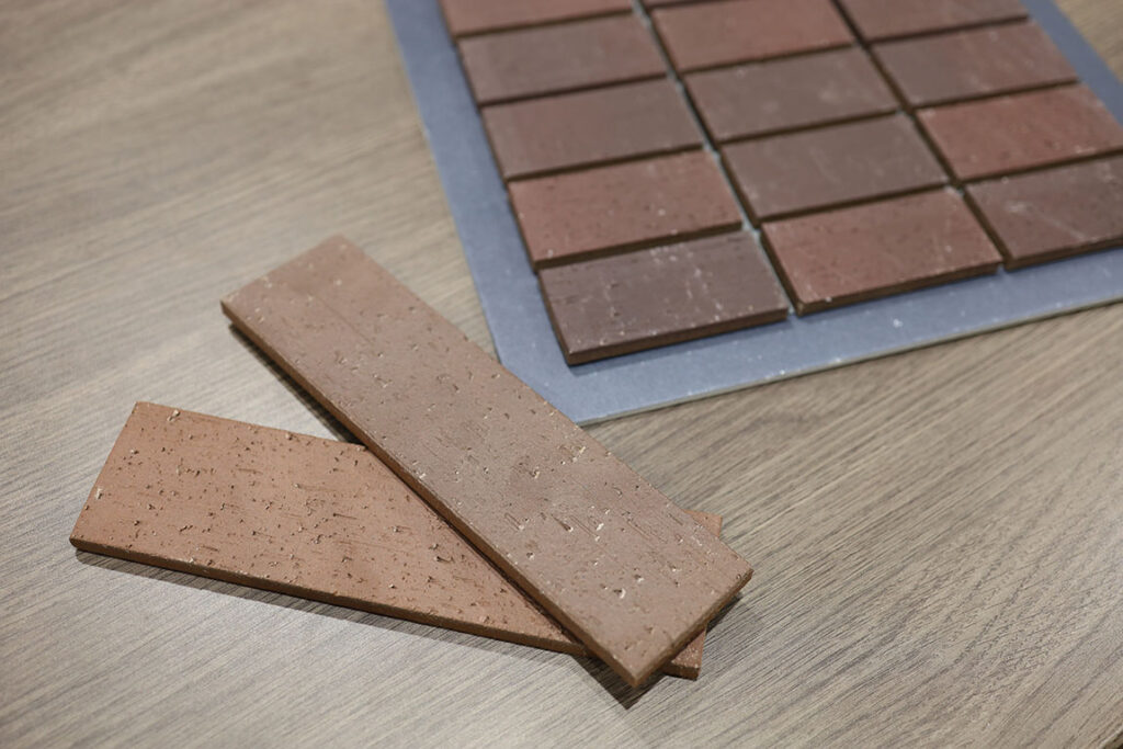 画像手前が二丁掛タイル、奥が45二丁掛タイルです。