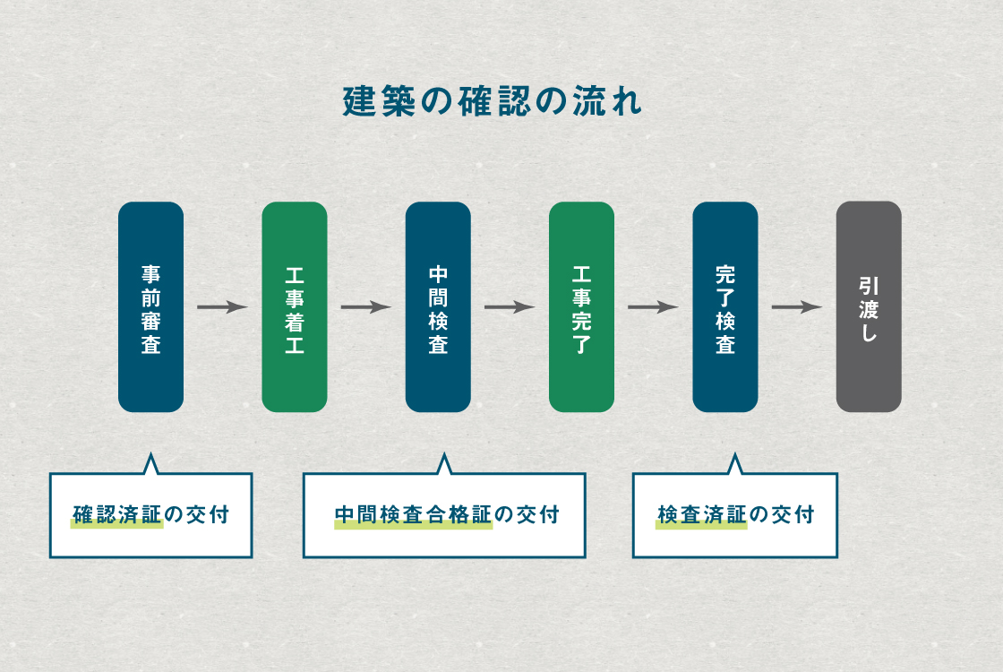 計画が開始してからお施主様への引き渡しまでに計3回の検査が行われています!