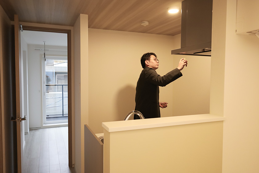 扉の開閉具合や壁の傷など、細かな箇所まで丁寧に確認していきます。