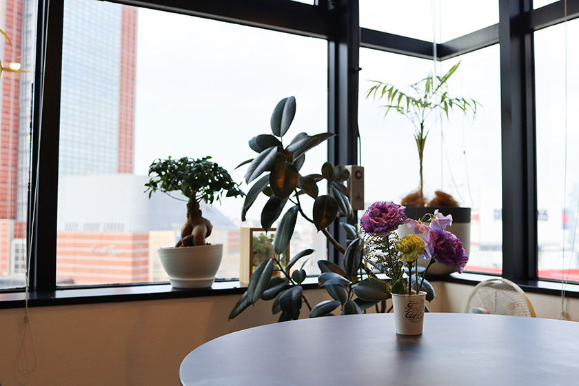 外の景色を見ながら仕事の合間にひと息つく時間が出来大人気の場所になっています。