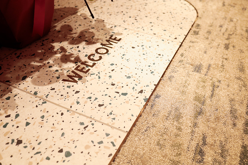 また、こちらのエントランスの床はタイルとカーペットの異なる2つの素材を組み合わせています!