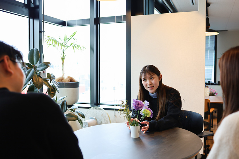 社員同士のちょっとした打ち合わせや、お昼休憩の際に利用しています。