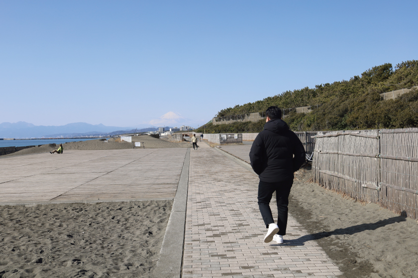 周辺では、ランニングをされている方やワンちゃんとお散歩を楽しんでいる方も多く、茅ヶ崎らしい穏やかな雰囲気が広がっていました。