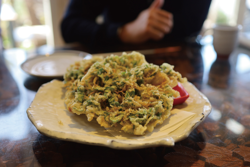 お店では、揚げたてのしらすのかき揚げをいただきました!
