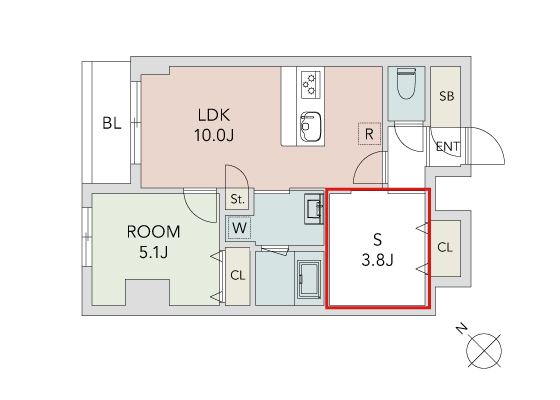 この「S」はサービスルームを指しており、在宅ワークや自営業の方にも嬉しい多目的スペースとなっています。