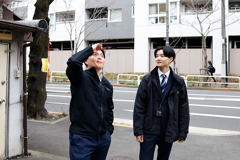 緊張の初日は、入社時の説明に加え、ほかの社員とのランチ、午後からはFROMの物件紹介と、
