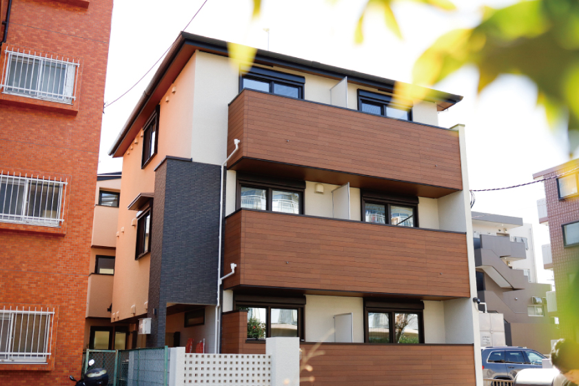 「なごみテラス西みずほ台」はブラウンとベージュを基調とした落ち着いた外観です。