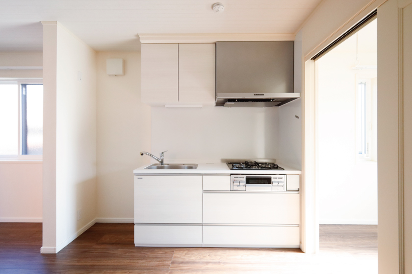 十分な広さを確保した収納スペースに、清潔感溢れるホワイトのキッチン。