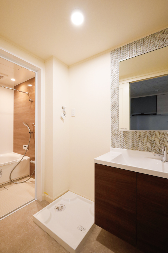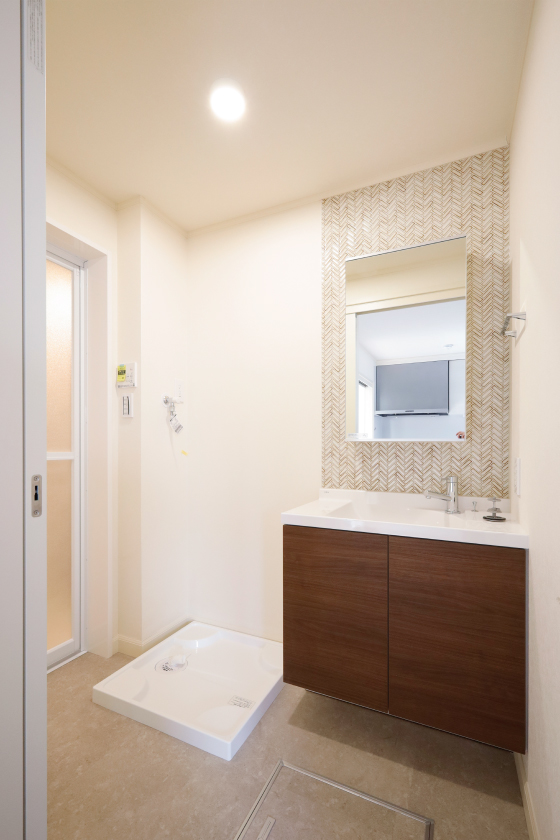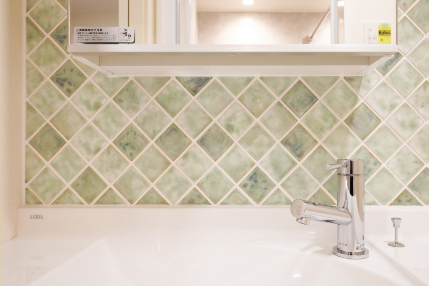 お手洗いだけでなく、洗面台のタイルも全室異なるデザインを選定しました。