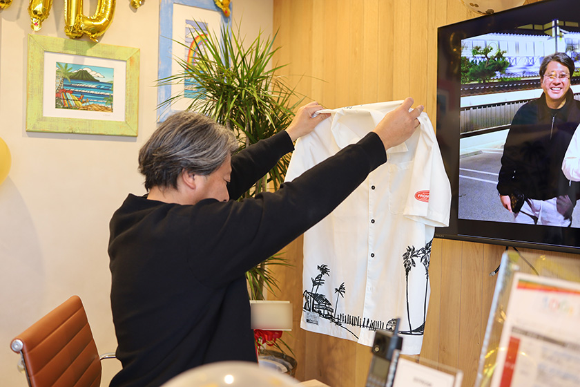 プレゼントは、オリジナルデザインのアロハシャツ。