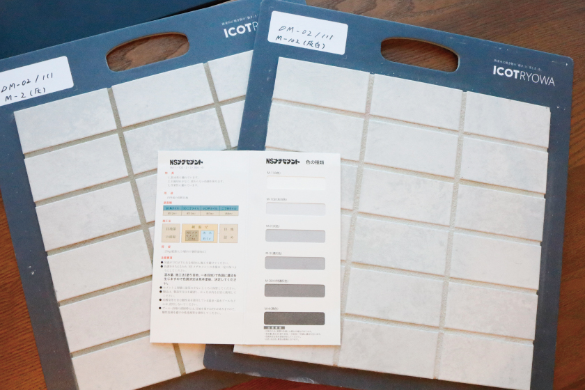 サンプルを何度も見比べながら目地の色を検討しました!