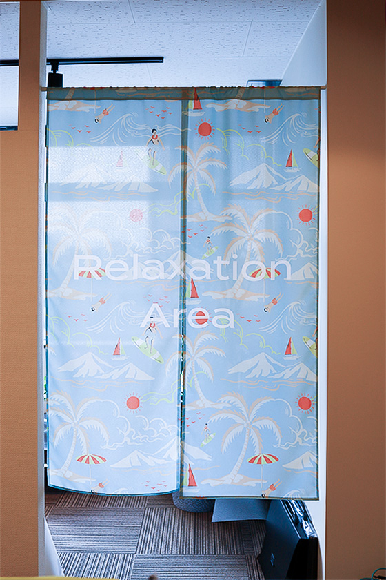 こちらの暖簾は、社内スペースの仕切りとして活躍しています。