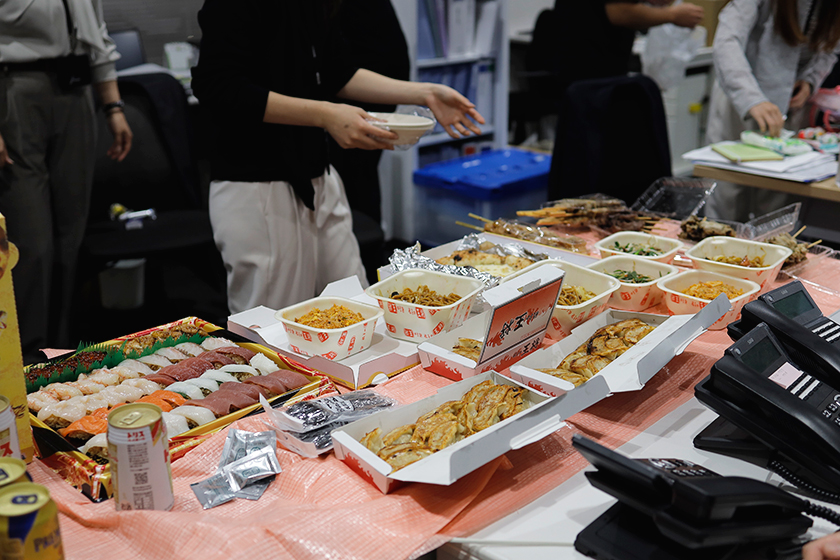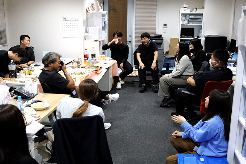 最後は事務所に戻り、屋台やお店で買った食べ物をみんなでいただきました!