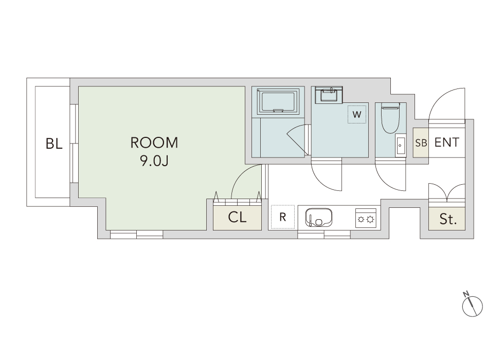 1階のテナントには2店舗が入居可能のため、飲食店や書店が集う神保町の街をより賑わせます。1Kタイプは、コンパクトな居室ながらも収納力を持たせ、効率よく空間を使用することができ、1LDKでは対面のシステムキッチンや、広さのあるバルコニーを備えるなど、設備も充実させています。広々と使用できる空間で、リモートワークでの気分転換にも適応したプランニングです。鮮やかに居室を彩る色柄は、心にもゆとりをもたらします。