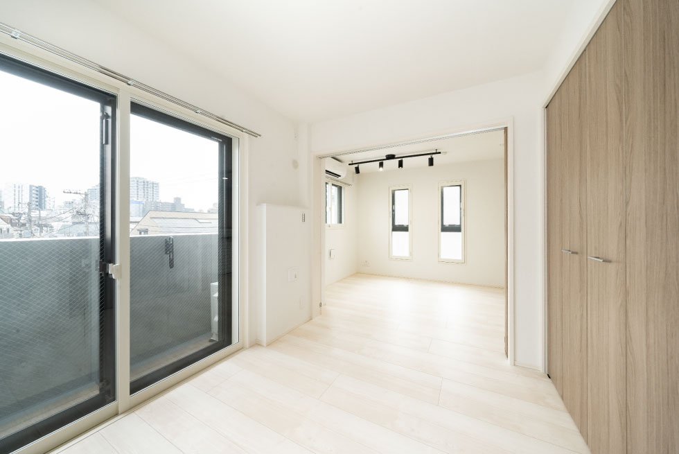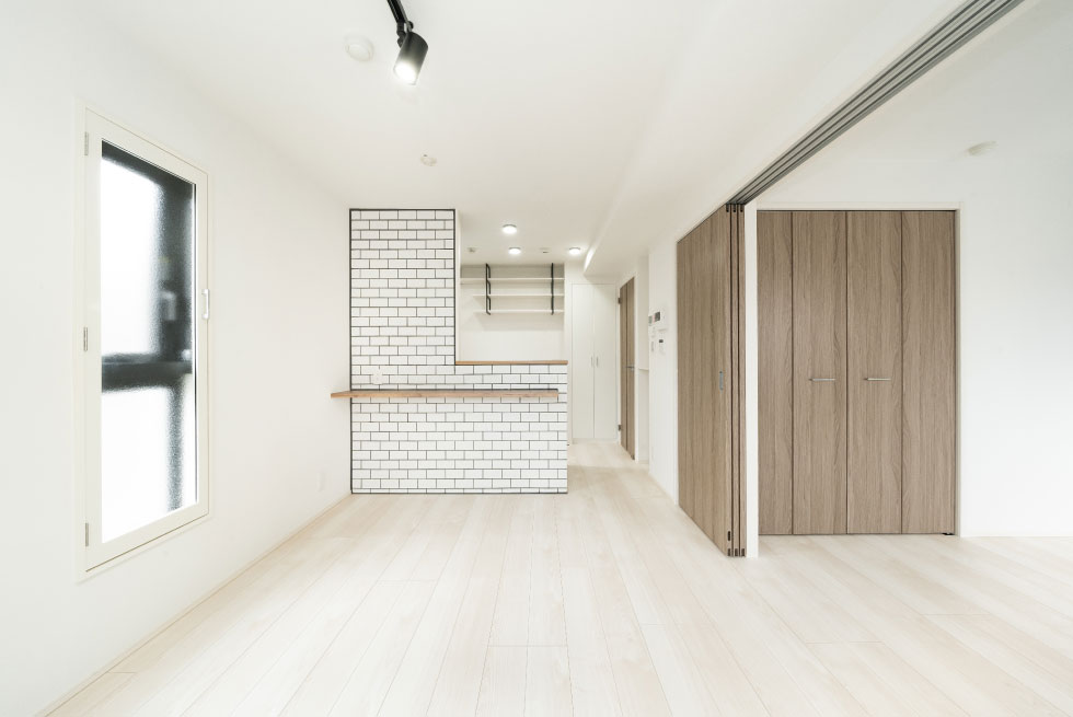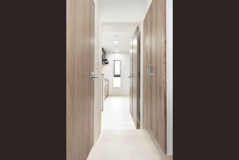 内装では、入居者様のお好きなインテリアテイストに染めていただくため、白を基調とし、かつ単調にならない内装計画としています。