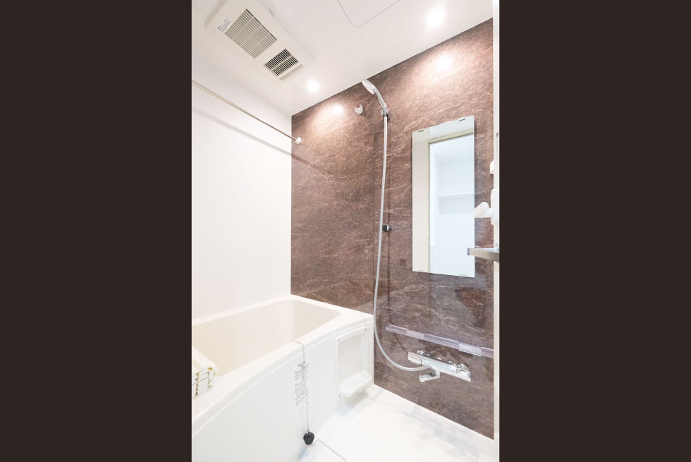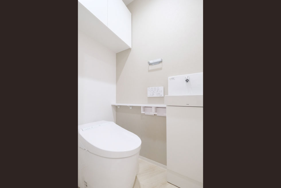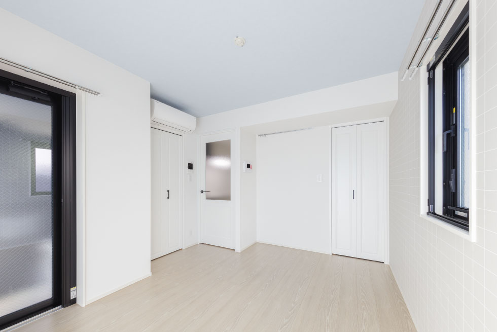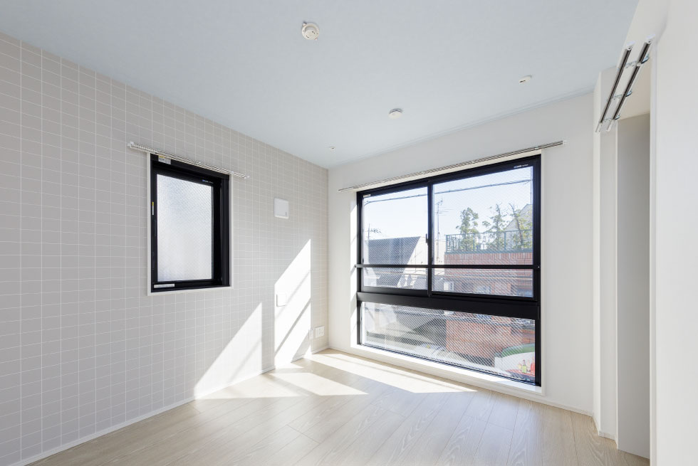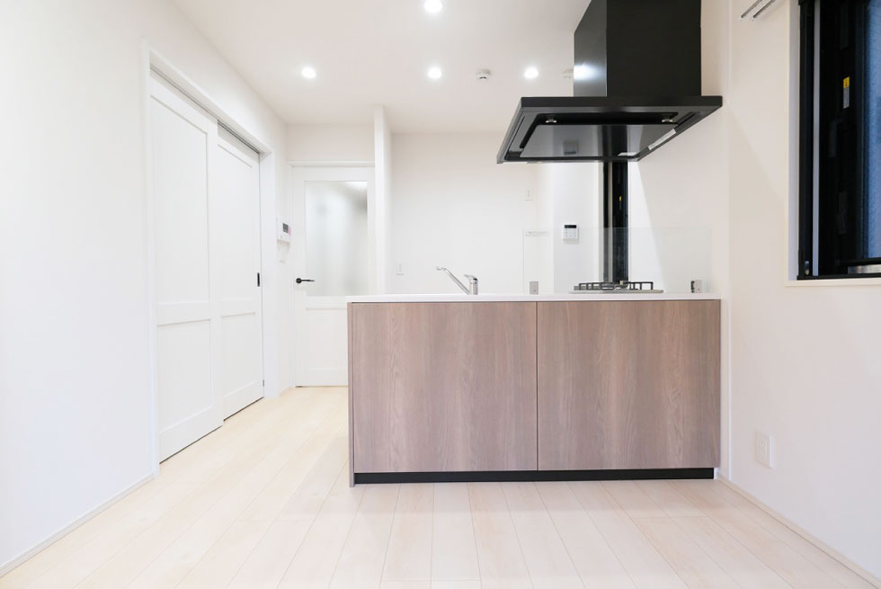 打ち放しコンクリートとブラックの窓枠の直線的なフォルムが洗練された印象を醸し出します。エントランスまわりには住人を温かく迎え入れるようなウッドタイルを使用し、建物中心部分にはコンクリートに木目模様をつけることによって、テクスチャーに変化をつけ、打ち放しとは異なる柔らかな表情を生み出します。内装は、デザインとディテールにこだわり、ミニマルながらも、どんなライフスタイルにも対応できるような間取計画としました。