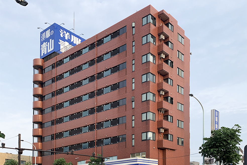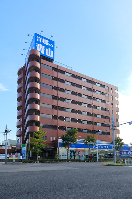 大通り沿いで存在感を放つレンガ調の外観デザイン